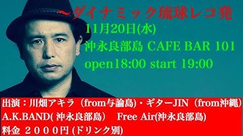 川畑アキラ アイランドツアー2019 ダイナミック琉球レコ発 沖永良部CafeBar101 1.甦る人々 2.ウヮーチタバーリ 3.サクラサク 4.ティダ 5.島の花 6.シンガーソングランナー 7.ダイナミック琉球 8.BURN 9.運命船サラバ号 ... ⇒ ライブ&アルバム激安セール♪